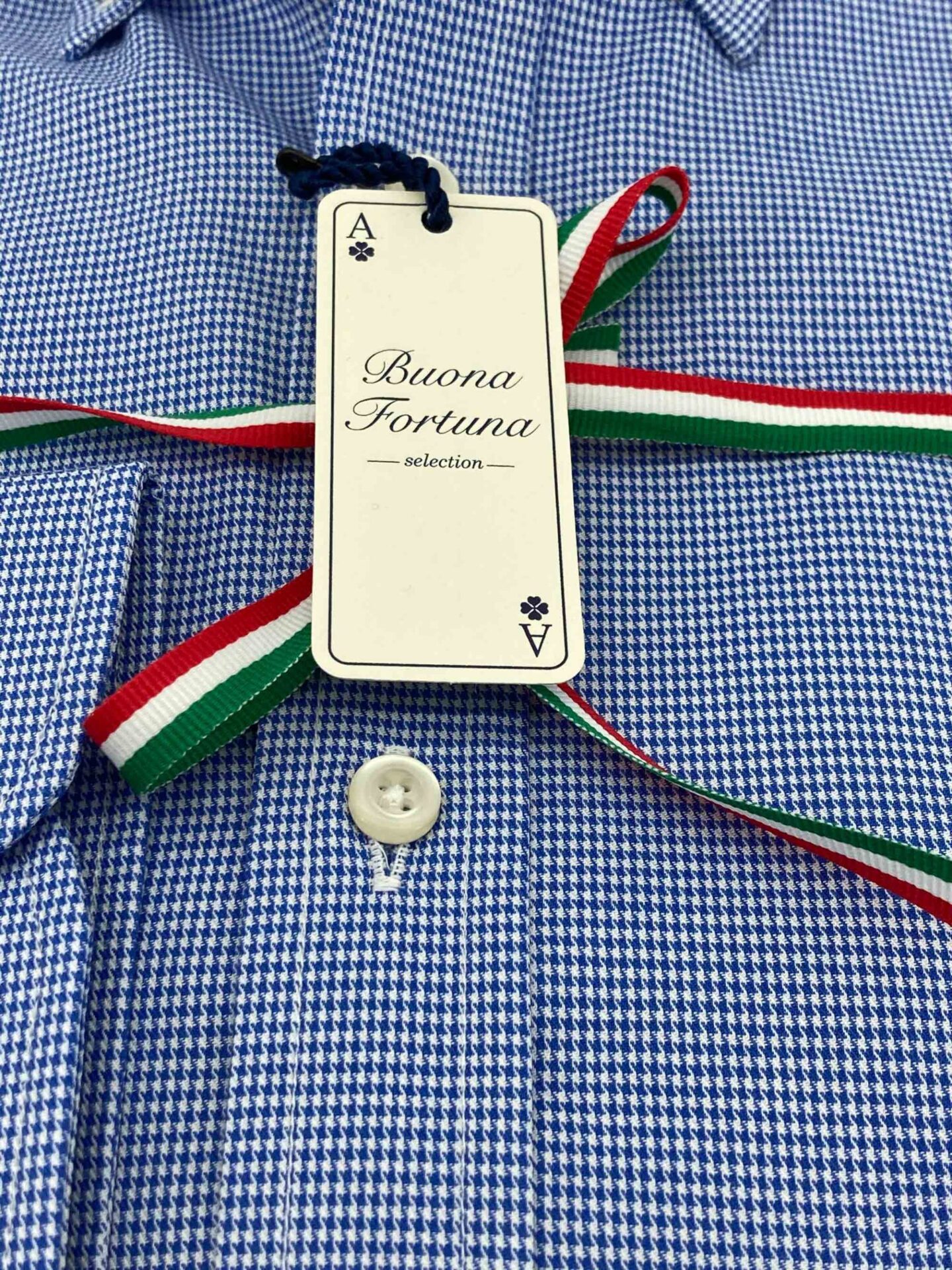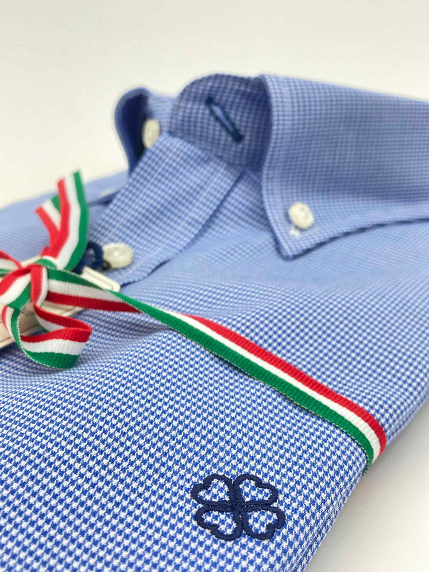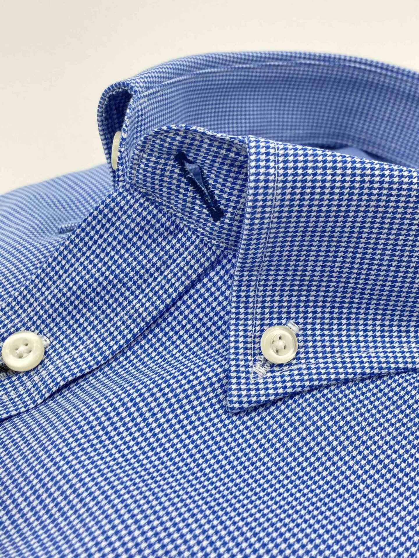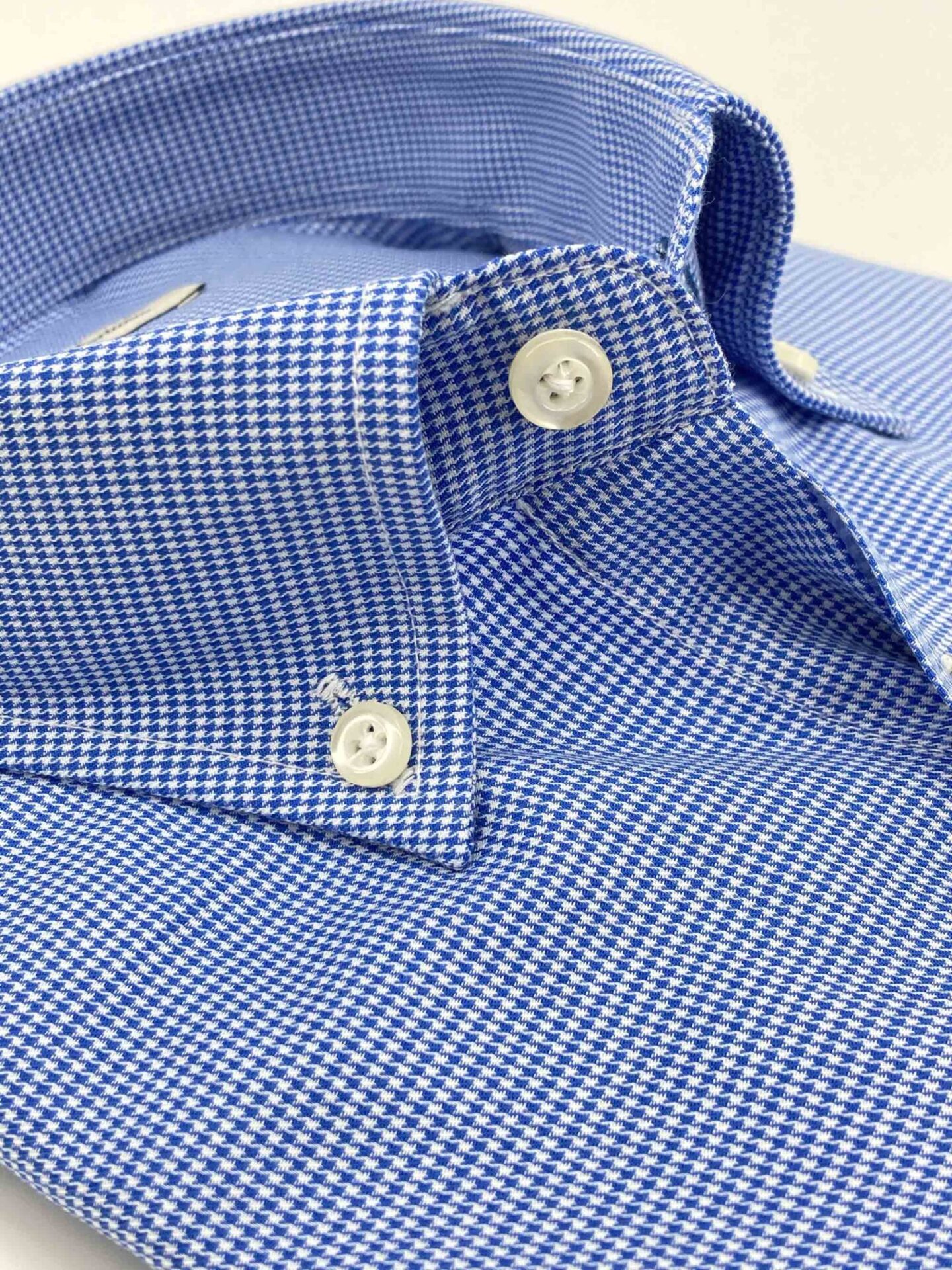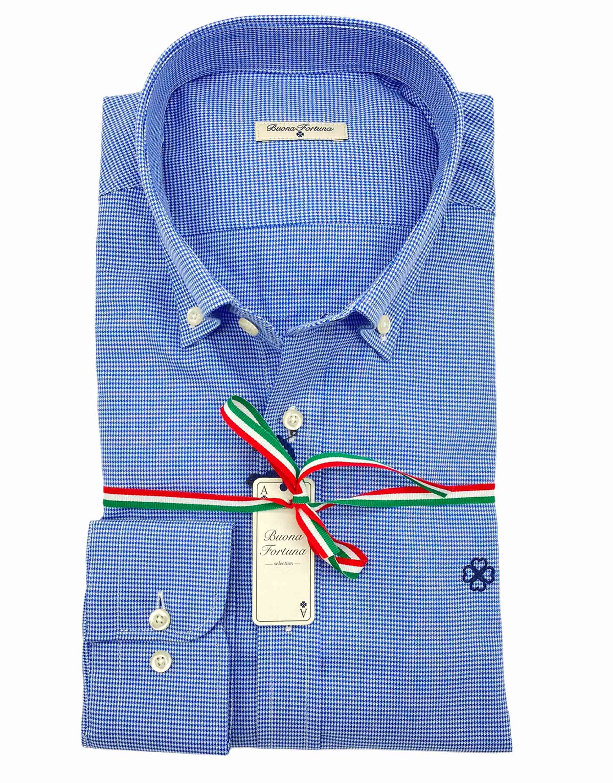 Camisa micro pata de gallo, tejido sarga fina, color azul.