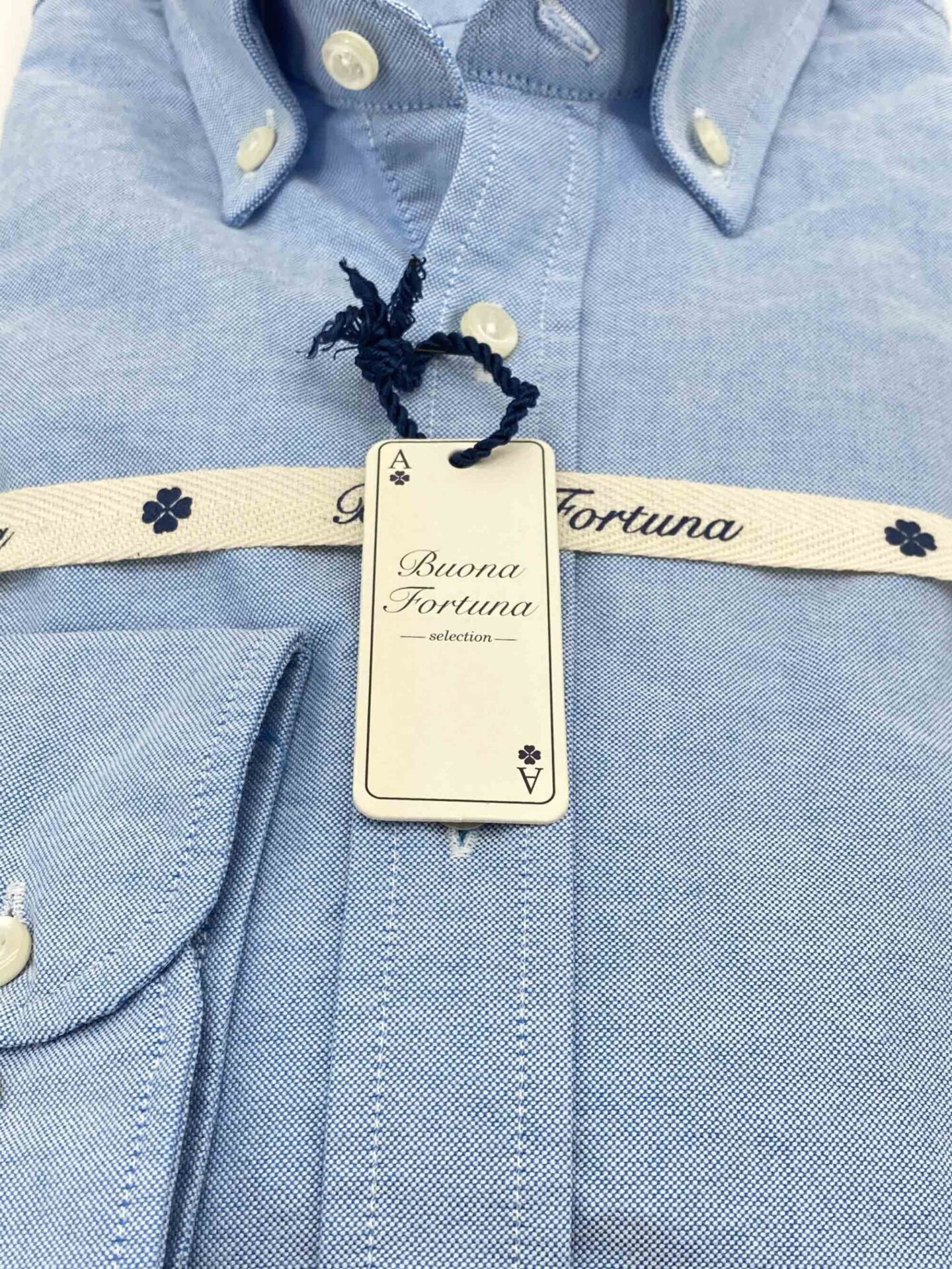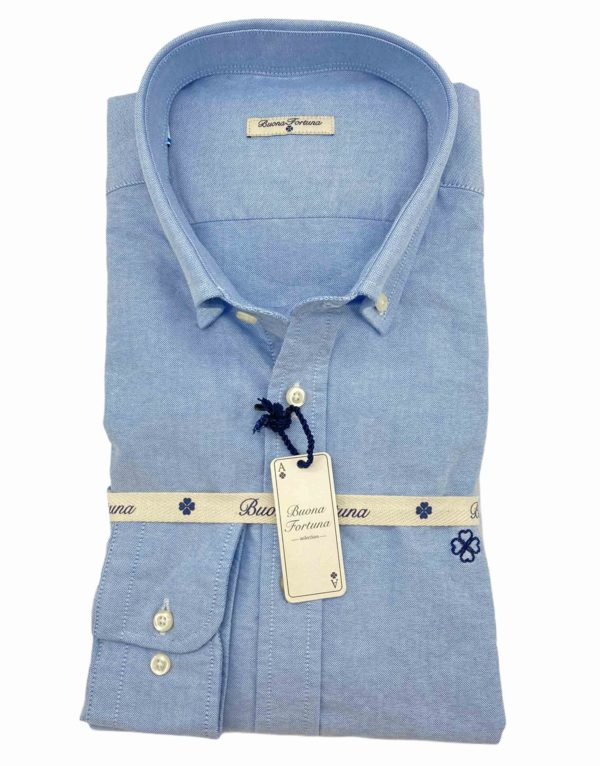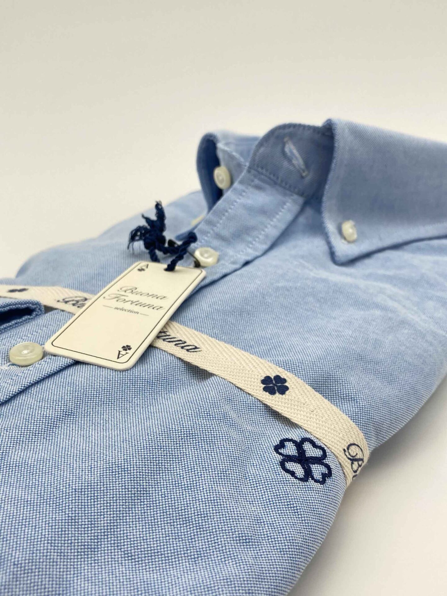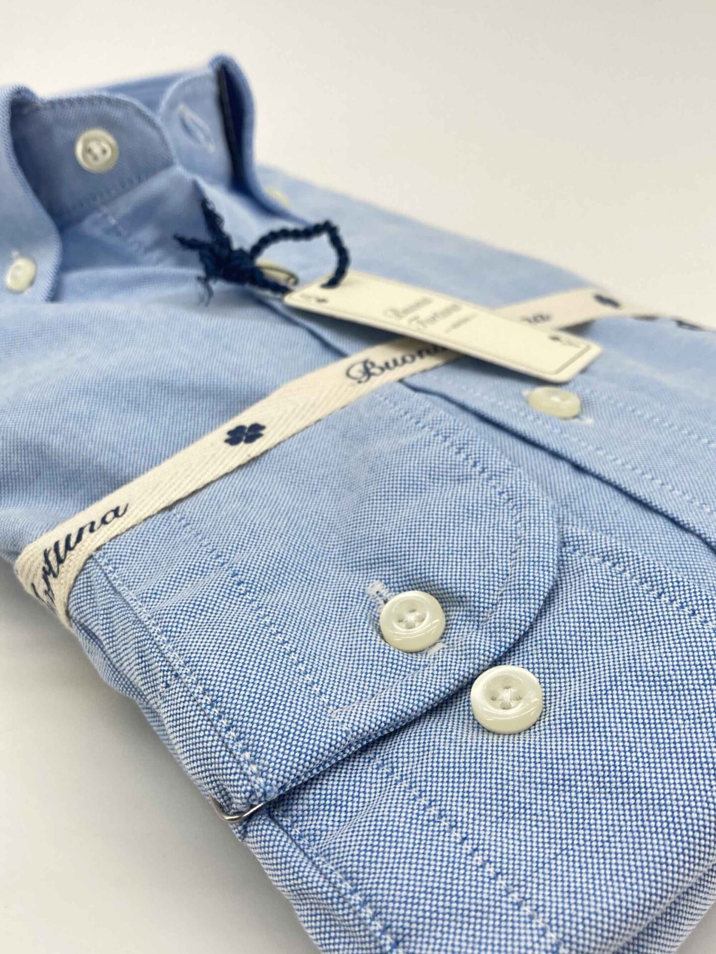 Camisa Oxford grueso, color azul celeste, un básico imprescindible.