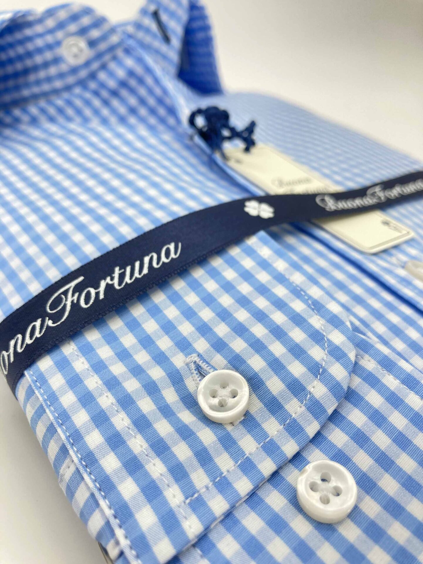 Camisa cuadro vichi azul celeste, tejido de popelin, totalmete atemporal, perfecta para el trabajo y combínala con tu jeans más cómodo para el fin de semana. Camisa de doble uso, se utiliza tanto para vestir como para sport.