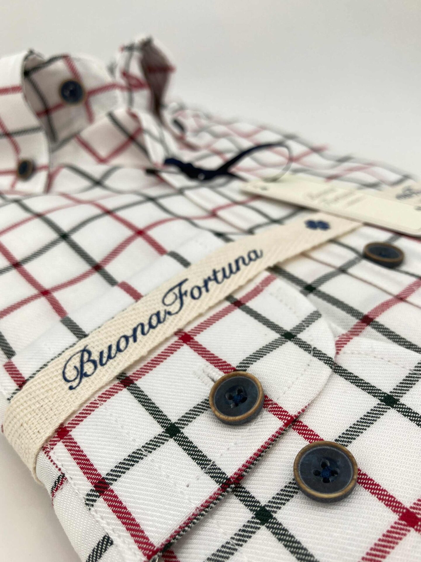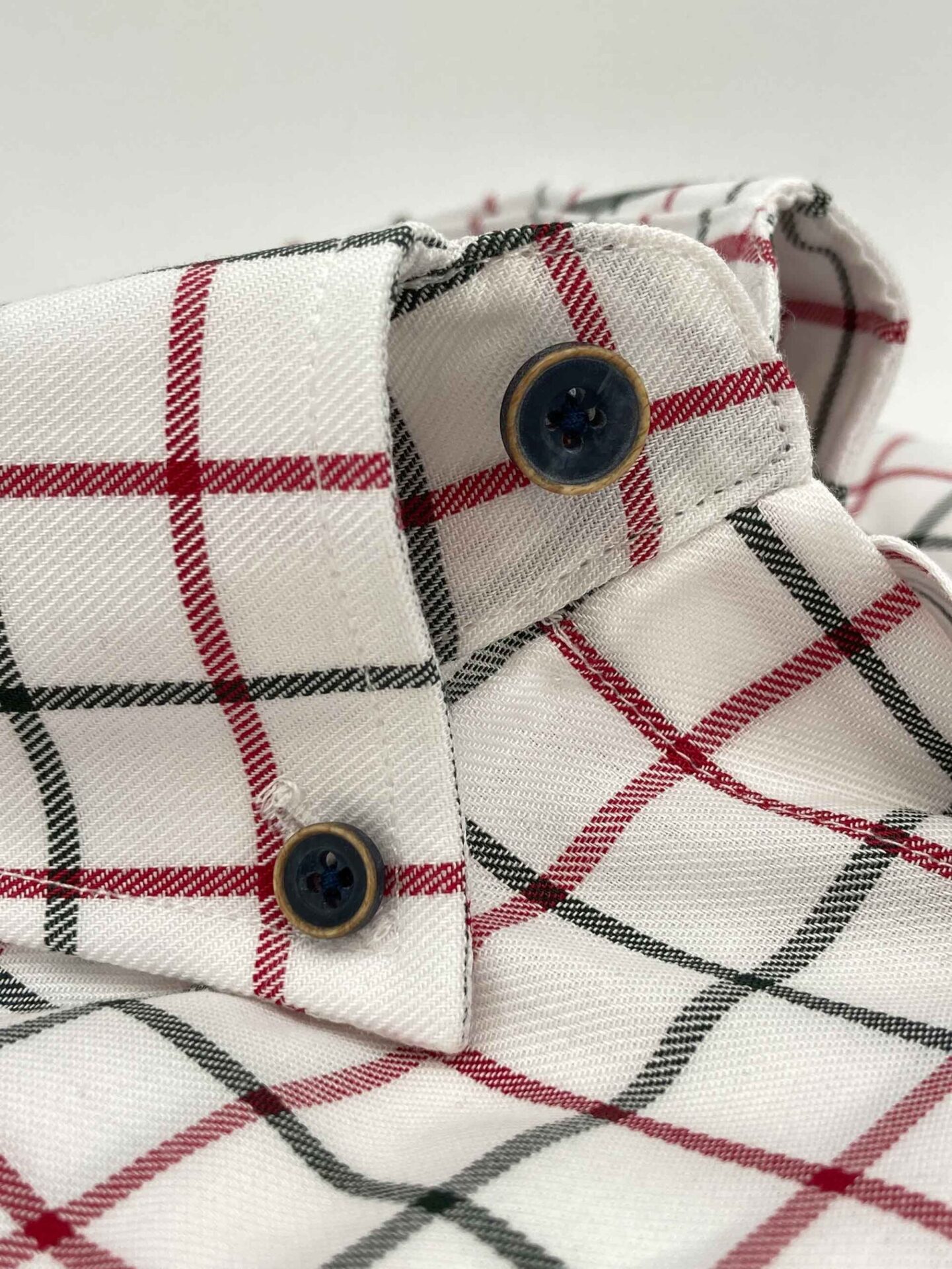 Camisa de cuadros harrys , un tipo de cuadro muy propio de invierno, un clásico en tendencia, combinando colores rojos y verdes sobre fondo crudo, tejido tipo Vielha, con un acabado lavado que le confiere una calidez y suavidad ideal para el otoño.