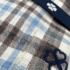 Camisa de cuadros marrones, azul celeste y crudo, tejido cálido de invierno, para vestir un look sport y cómodo, ideal para combinar con prendas azul marino, gama de marrones o de colores claros, confeccionada en un tejido de vielha espigado, con un acabado suavizado.