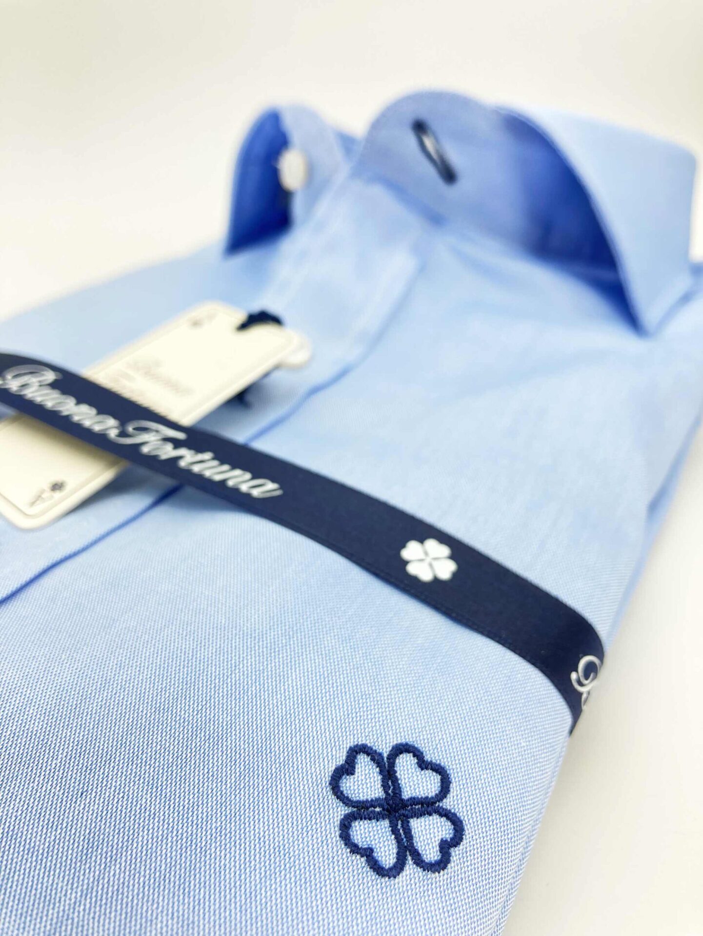 Camisa lisa azul celeste, tejido Pint Point. Un icono de la marca. Camisa de doble uso, se utiliza tanto para vestir como para sport.