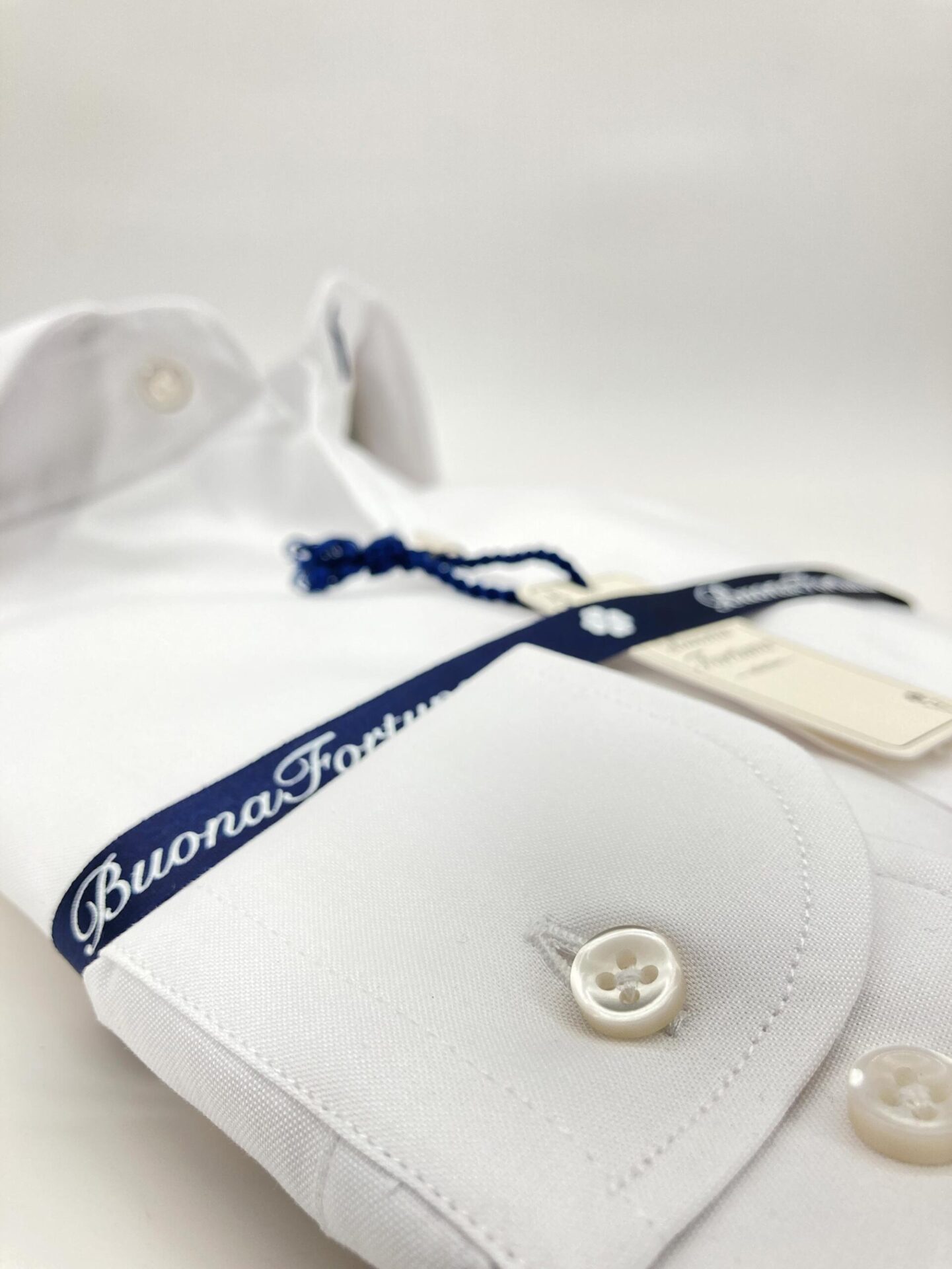 Camisa lisa blanca, tejido Pint Point. Un icono de la marca. Camisa de doble uso, se utiliza tanto para vestir como para sport.