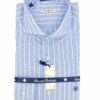 Camisa rayas anchas en celeste y blanco, estructura del tejido de fil a fil, totalmete atemporal, perfecta para el trabajo y combínala con tu jeans más cómodo para el fin de semana. Camisa de doble uso, se utiliza tanto para vestir como para sport.
