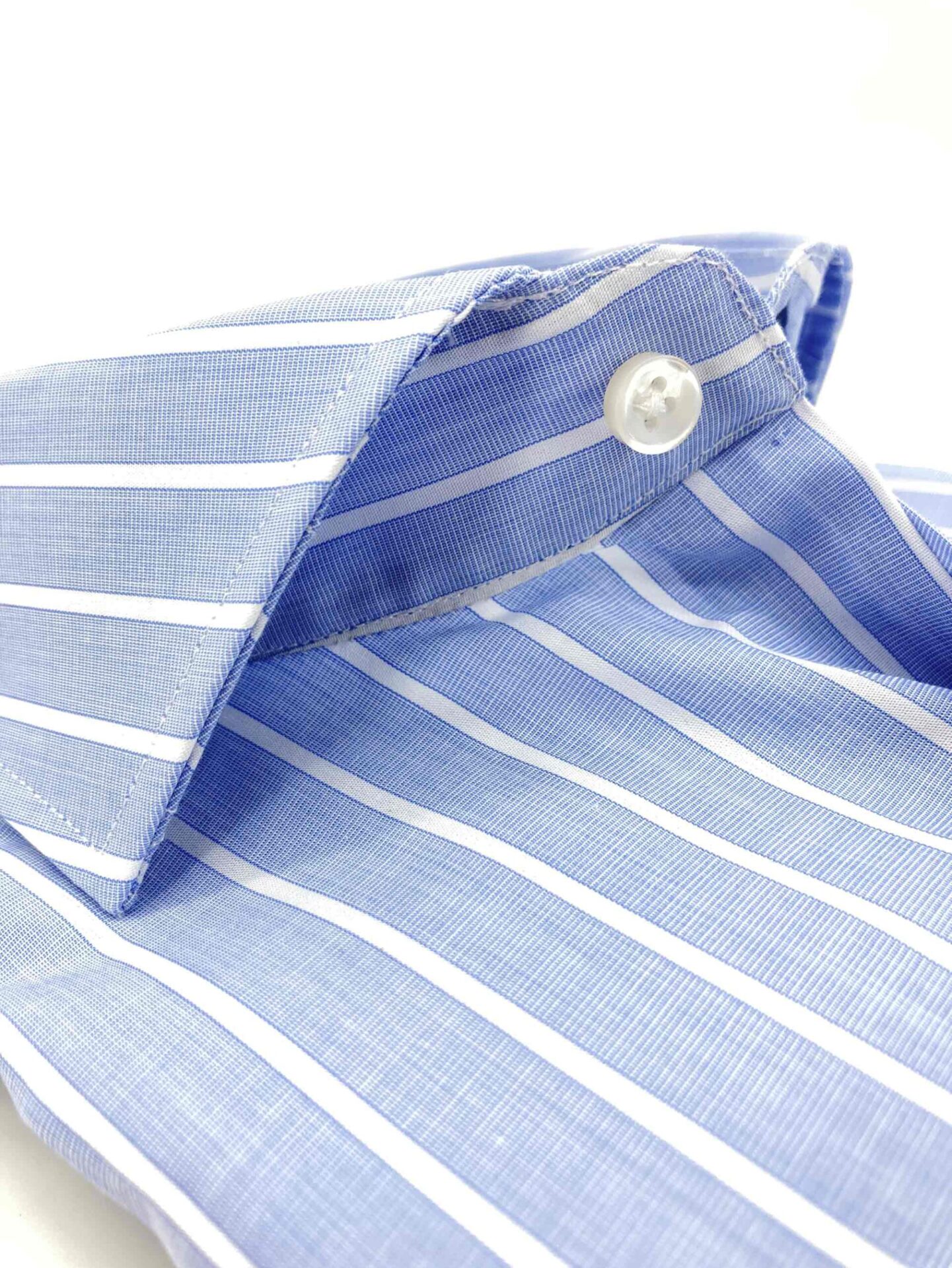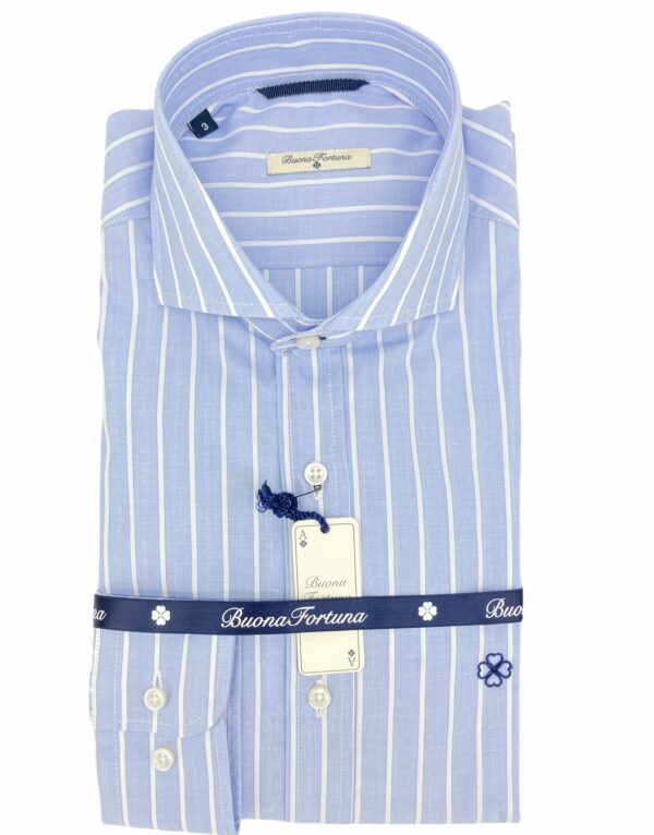 Camisa rayas anchas en celeste y blanco, estructura del tejido de fil a fil, totalmete atemporal, perfecta para el trabajo y combínala con tu jeans más cómodo para el fin de semana. Camisa de doble uso, se utiliza tanto para vestir como para sport.