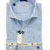Camisa de rayas azules, tipo candela. Camisa de doble uso, se utiliza tanto para vestir como para sport.