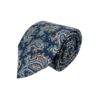 Corbata de seda italiana, confeccionada en tejido de twill color marino, estampada con amebas color camel y crudo.