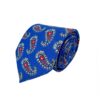 Corbata de seda italiana, confeccionada en tejido de twill color azulón, estampada con dibujos de amebas rojas y grises. Ideal para combinar con camisa azul celeste, blanca. Le damos una vuelta a un clásico.