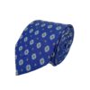 Corbata de seda italiana, confeccionada en tejido de twill color azul, hexágonos celeste y topos color piedra.