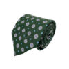 Corbata de seda italiana, confeccionada en tejido de twill color verde, hexágonos piedra y topos color celeste.