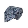 Corbata de seda italiana, confeccionada en tejido de twill color marino, estampada con amebas color azul celeste y blanco.