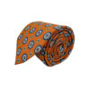 Corbata de seda italiana, confeccionada en tejido de twill color naranja quemado y estampaciones de margaritas en blanco. una opción diferente y con personalidad.