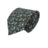 Corbata de seda italiana, confeccionada en tejido de twill color verde oliva, estampada con dibujos corbateros de amebas en blanco y azul. Ideal para combinar con camisa blanca o celeste. Con personalidad y nada extrabagante.