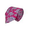 Corbata de seda italiana, confeccionada en tejido de twill color rosa fresa estampada con paramecios azules y rosa nudé.
