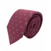 Corbata tejida de lana, fondo burdeos, estampada con dibujos de pequeñas flores en beig y marino. Colores de otoño, para combinar con trajes o americanas de texturas de invierno como la lana, perfecta para camisas blancas, azules, de rayas, cuadros.