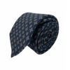 Corbata tejida de lana, fondo azul marino, estampada con dibujos de aires romanos gris y camel. Elegante y fácilmente combinable.