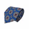 Corbata tejida con estructura, color azul y dibujos de medallones y estrellas blancas y granates, un producto muy exclusivo a tener en cuenta, nunca falla con camisa blanca y traje marino o gris. Por qué no un poco de revolución.