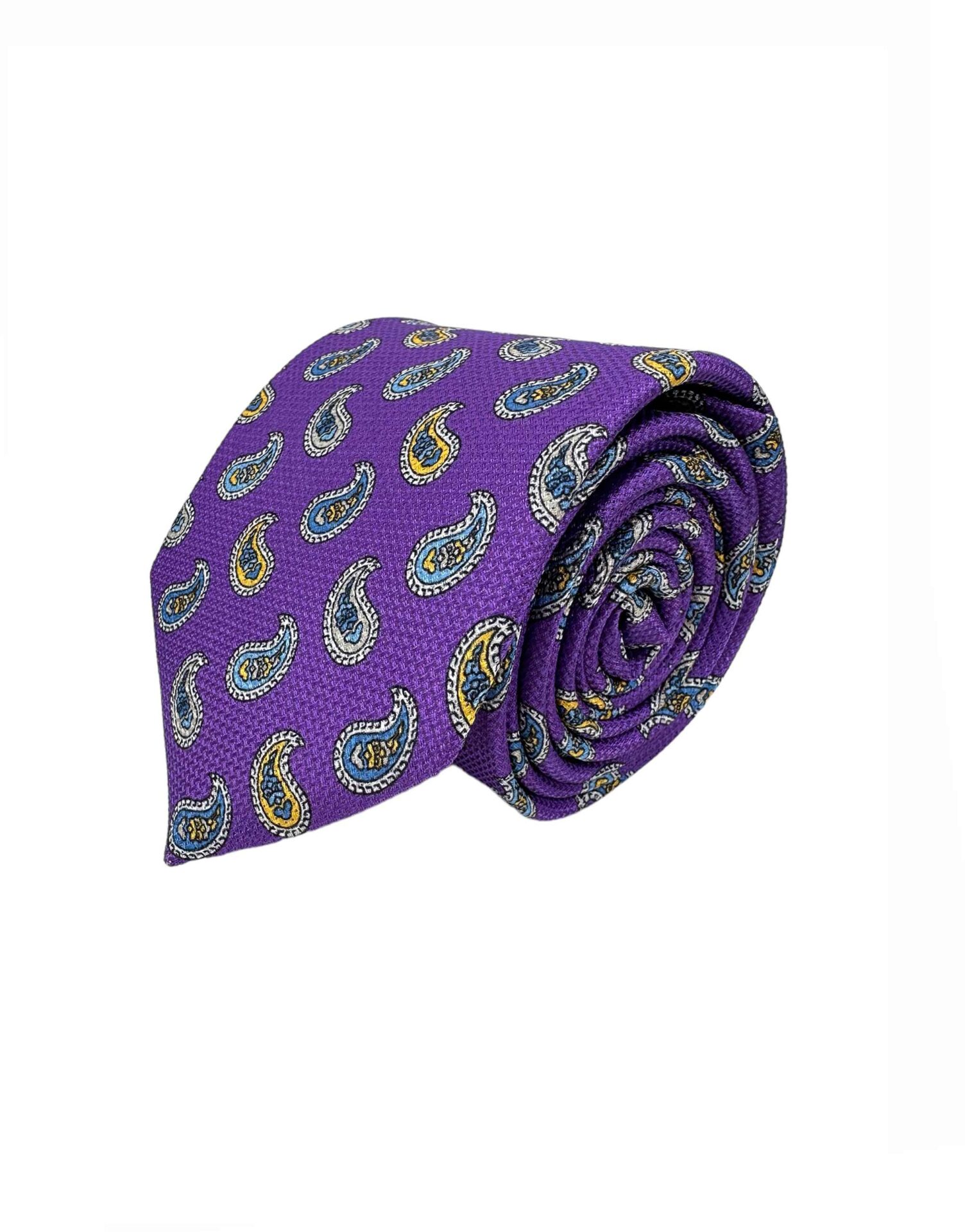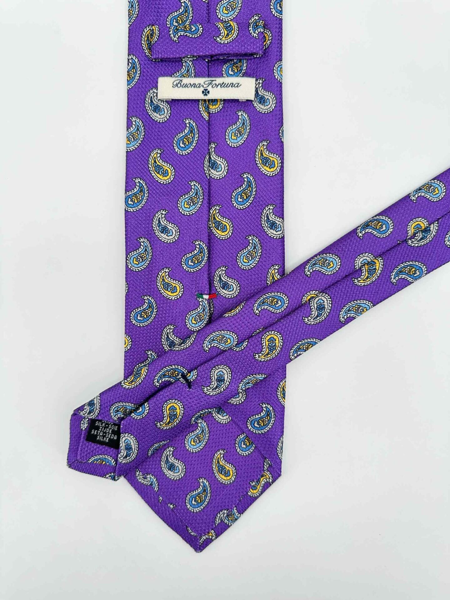 Corbata tejida con estructura, color malva y dibujos de amebas amarillas y azules, un producto muy exclusivo a tener en cuenta, sal de los colores clásicos y di quien eres con camisa blanca y traje marino o gris. Por qué no un poco de revolución.