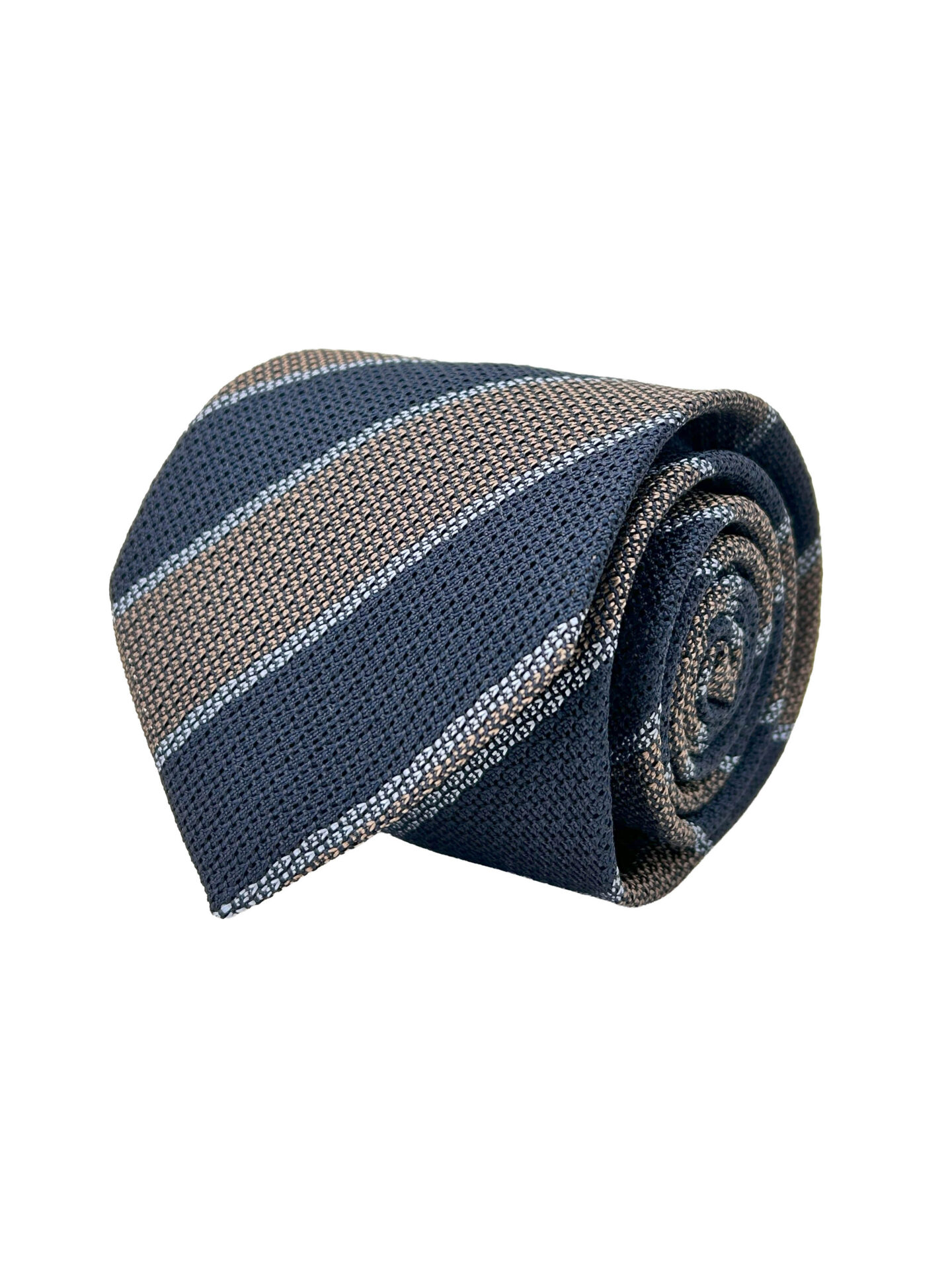 Corbata Tejida Garza Rayas Azules y Tostadas