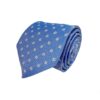 Corbata tejida en dibujo labrado color azul celeste y blanco, pequeños óvalos bordados en blanco y azul marino, ideal para combinarla con camisa blanca, perfecta para traje y para chaqué.