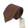 Corbata tejida fondo marrón mini topo celeste y blanco.