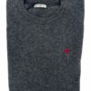 Jersey cuello caja de lana Lambswooll, color gris marengo y logo rojo cereza, combina genial con pantalones jeans, chinos azul marino, beig, camisas blancas… un básico en la colección de Buona Fortuna.