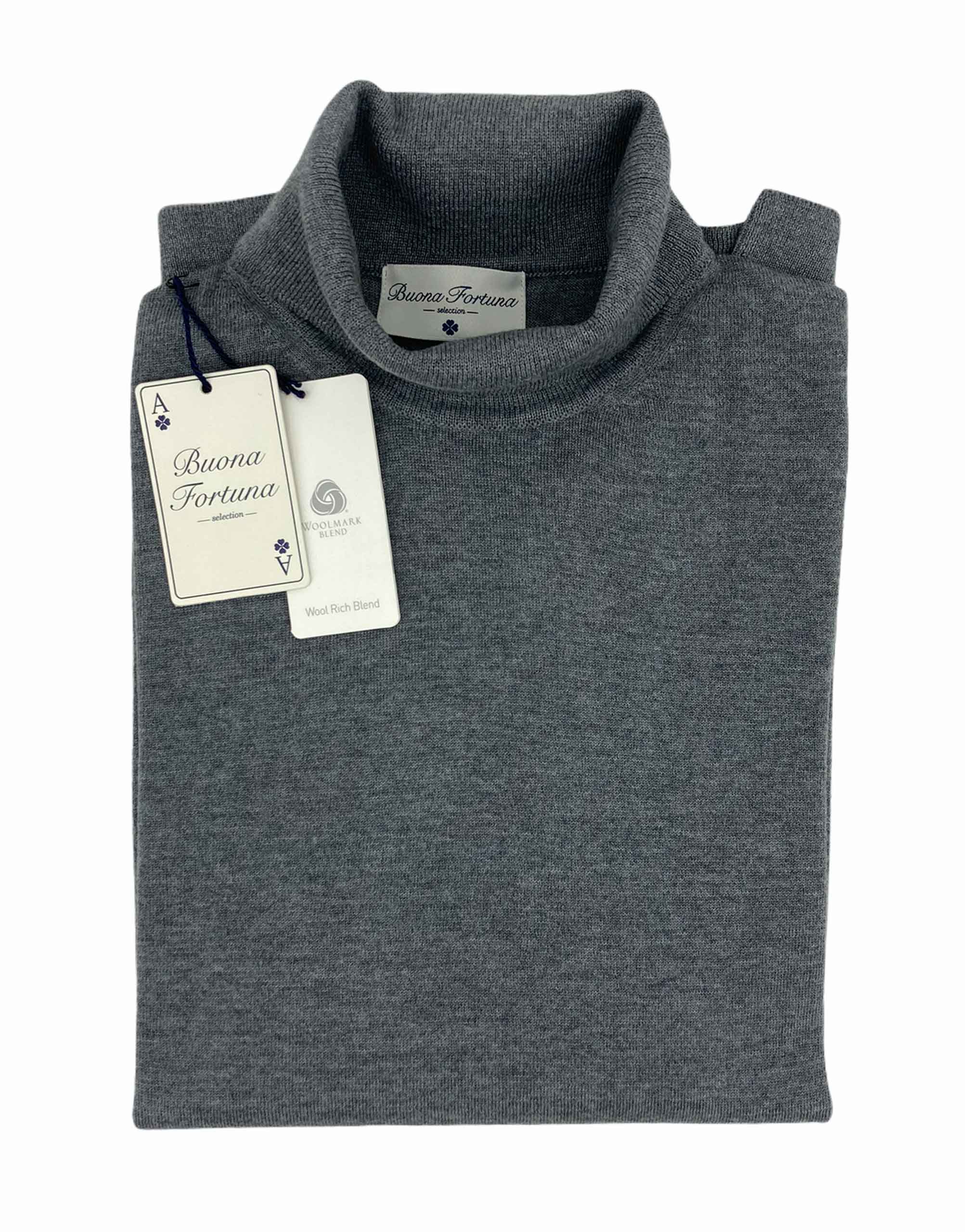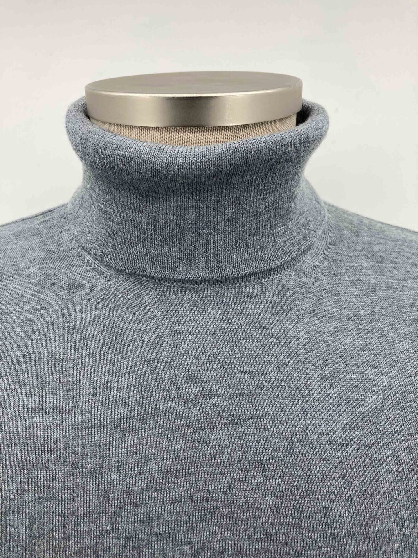 Jersey cuello cisne gris medio, patrón regular, un básico imprescindible.