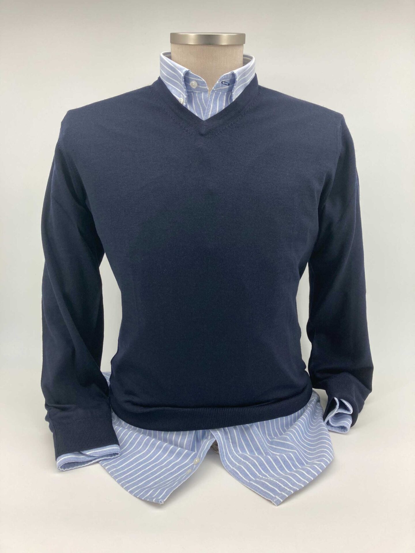 Jersey cuello pico, patrón regular, un básico imprescindible.