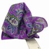 Pañuelo estampado en fondo viola con cashmeres azul, verde y blanco.