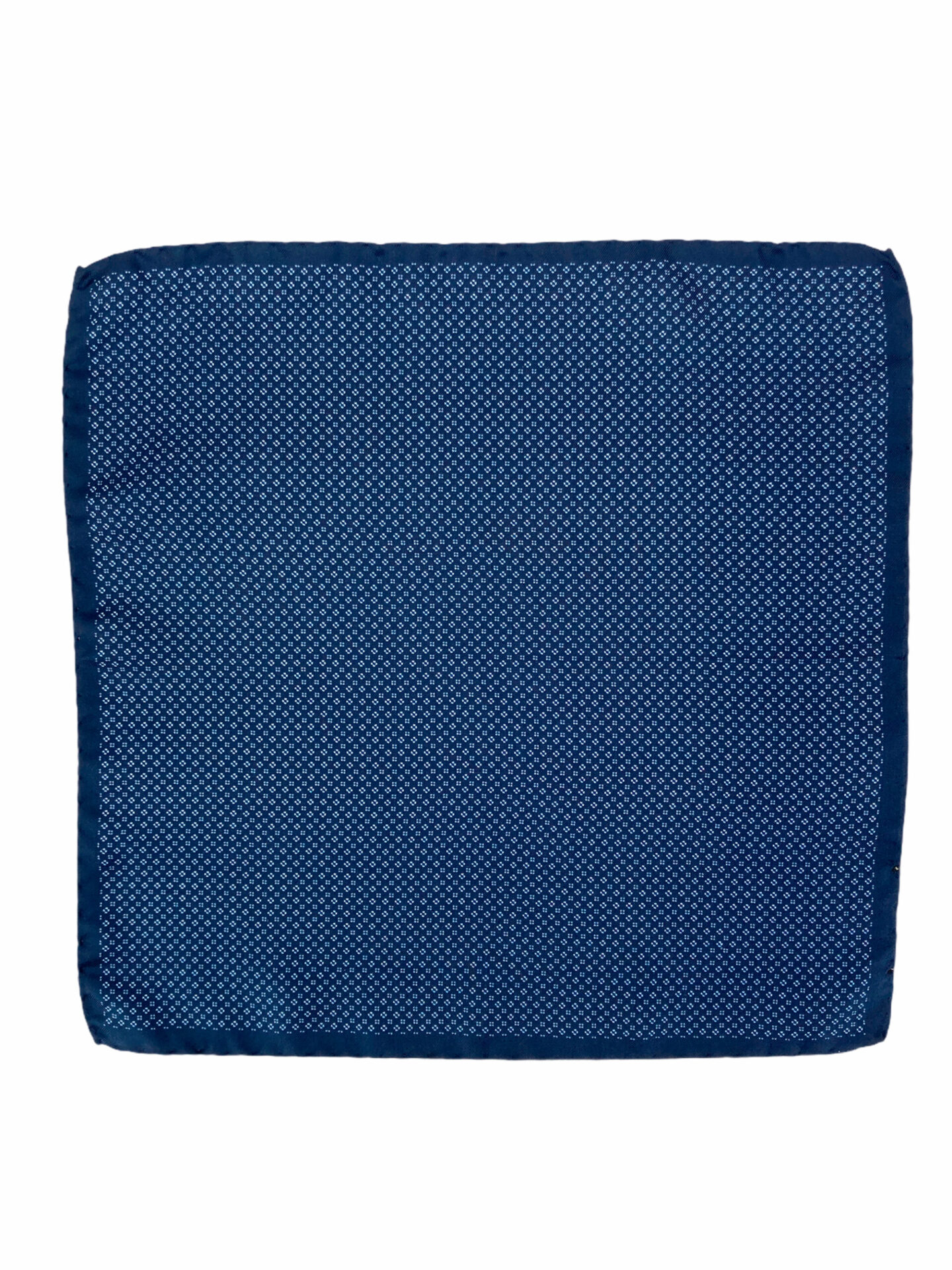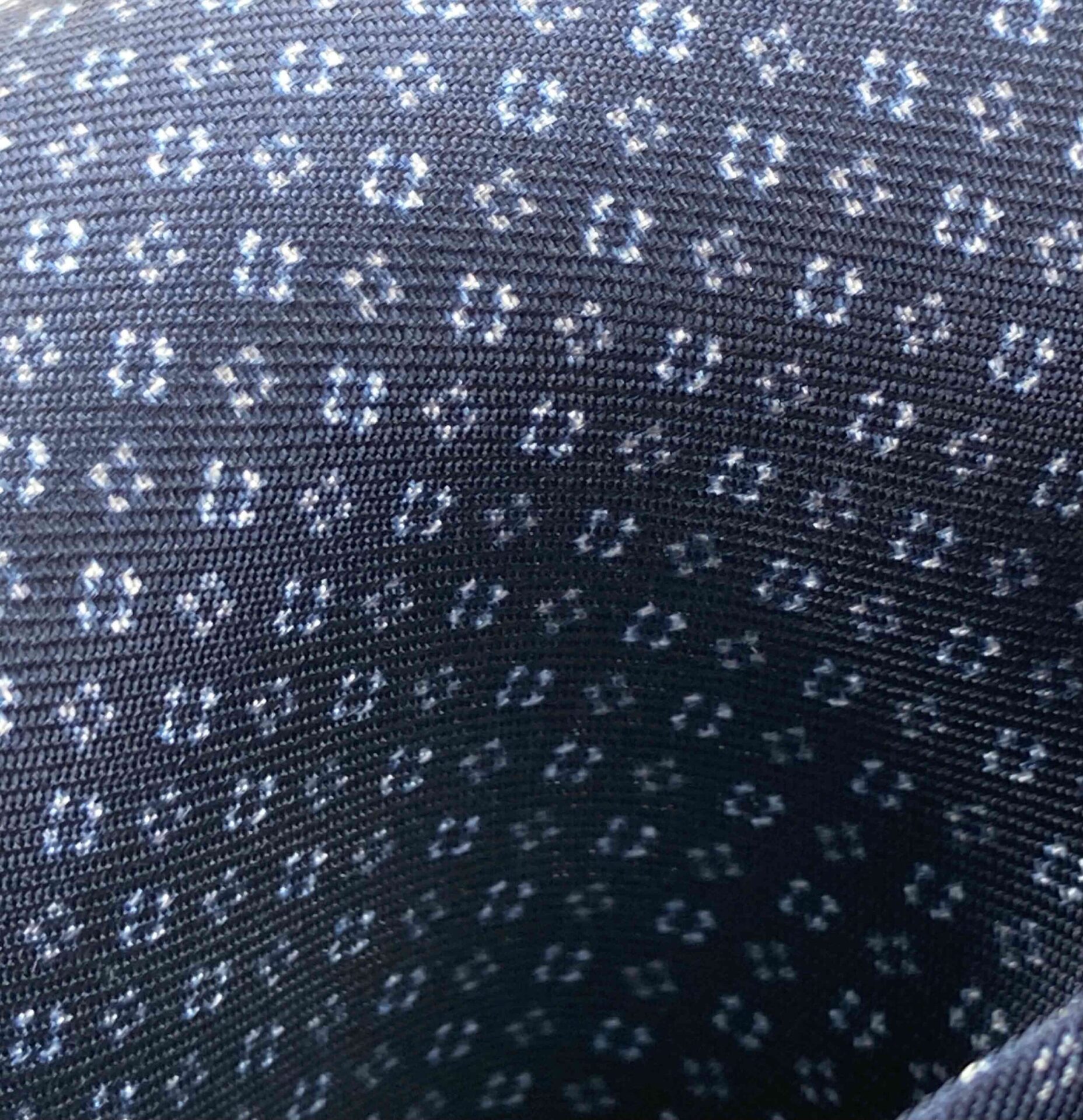 Pañuelo estampado fondo azul marino y pequeños dibujos corbateros celeste.