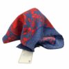 Pañuelo estampado con óvalos azul marino y flores rojas.