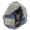 Pashmina de lana estampada, cuadros en colores azules y grises combinados con espiga.