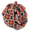 Pashmina de lana estampada, fondo marino y granate, combinada con flores jejas y granates.