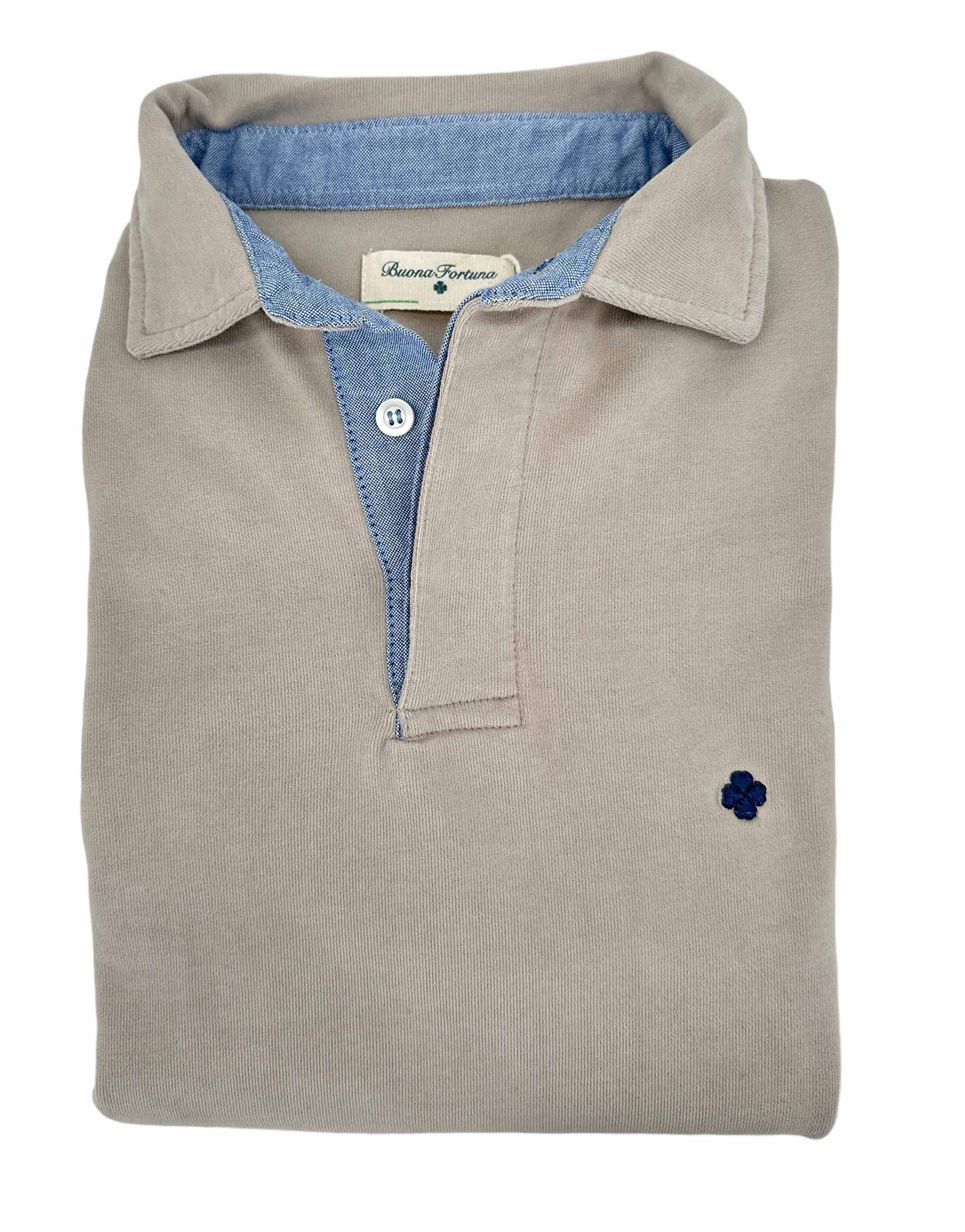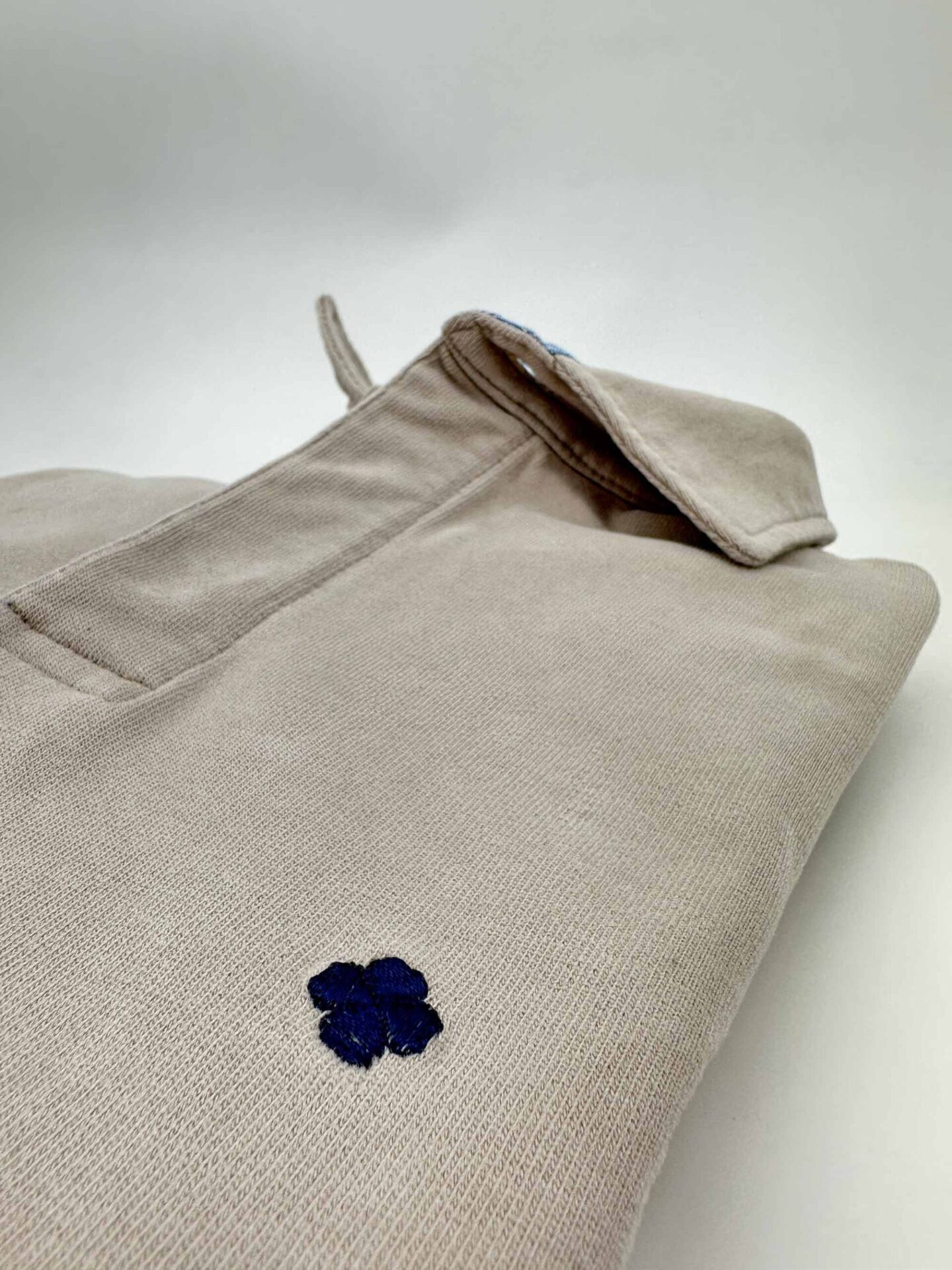 Polo de cuello camisero con vistas e interiores en oxford azul, color beig y logo azul marino, prenda muy cómoda, podemos utilizarla a modo de sueter exterior o llevarla al cuerpo o con camiseta, combina ideal con jeans y chinos.